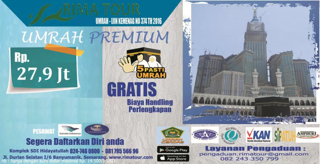 rimatour, menyediakan berbagai paket umroh semarang yang sudah berdiri sejak tahun 2000.